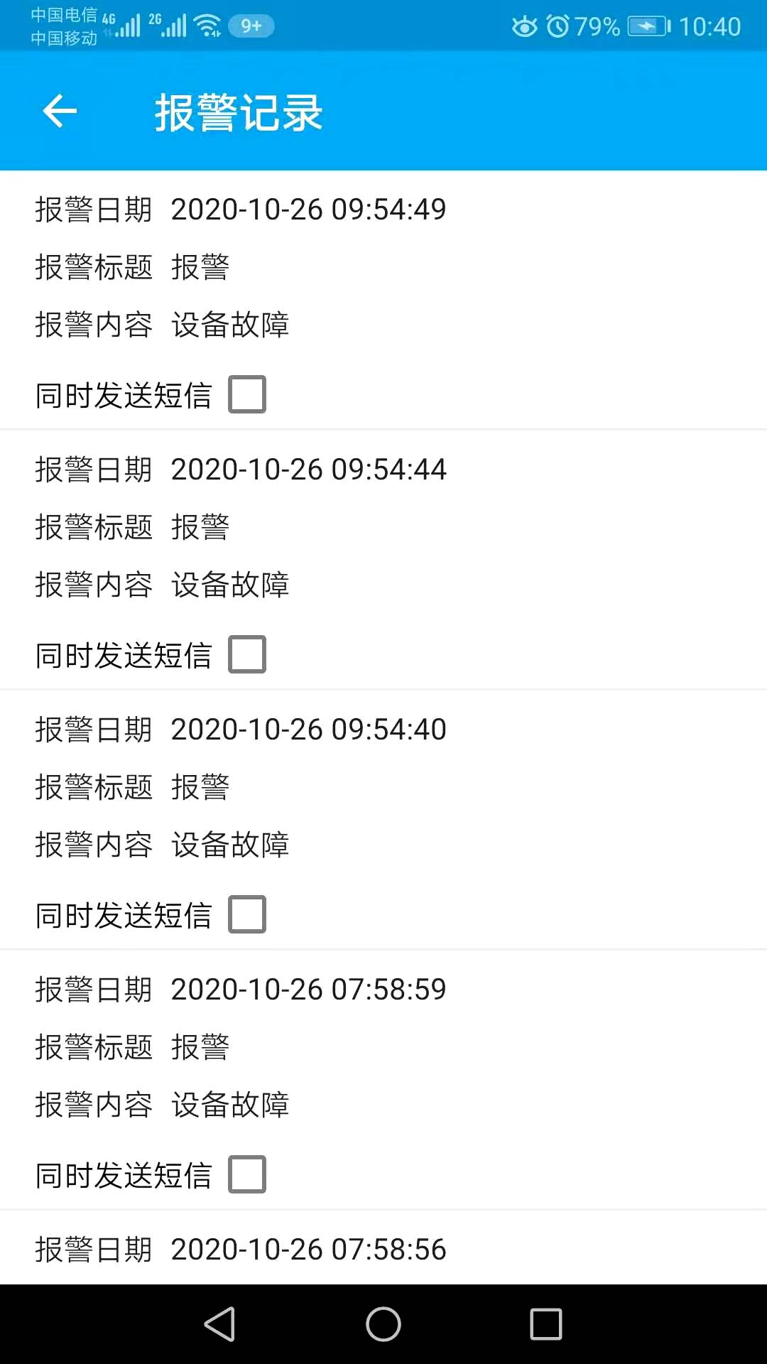 APP報警記錄界面: