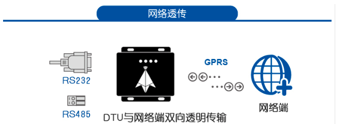 支持網(wǎng)絡(luò)透傳——即透明傳輸,4G DTU接收什么就發(fā)送什么,快速連接串口設(shè)備和網(wǎng)絡(luò)服務(wù)器,將串口數(shù)據(jù)快速轉(zhuǎn)成4G傳輸。